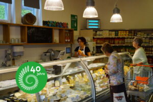 Vor 40 Jahren konnte man eigentlich noch nicht von einer Käsetheke sprechen, ein Grundstock war aber da. Die Vielfalt des Käseangebots hat über die Jahre zugenommen und die Qualität des Käses konnten wir auch immer wieder steigern. Dabei sind wir unseren Grundsätzen einer konsequent biologisch-dynamischen Landbewirtschaftung treu geblieben.